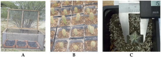 Seedlings were obtained from previous experiments on the viability and germination of Cacti species. Plants with homogeneous size and vigor were selected (3–5 replicates per experimental unit), as Table 1 shows.