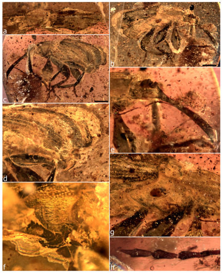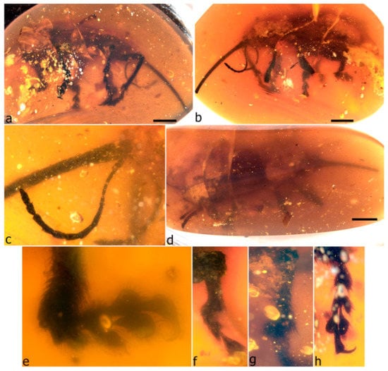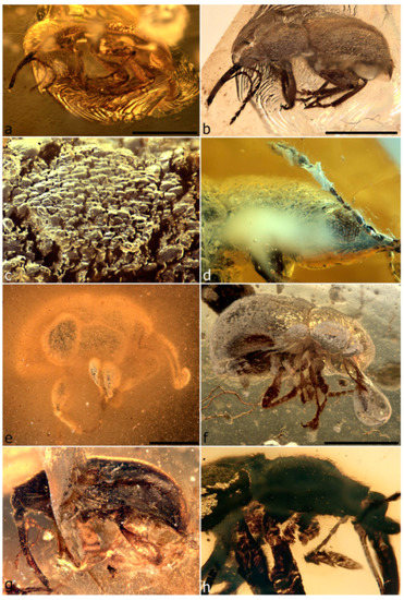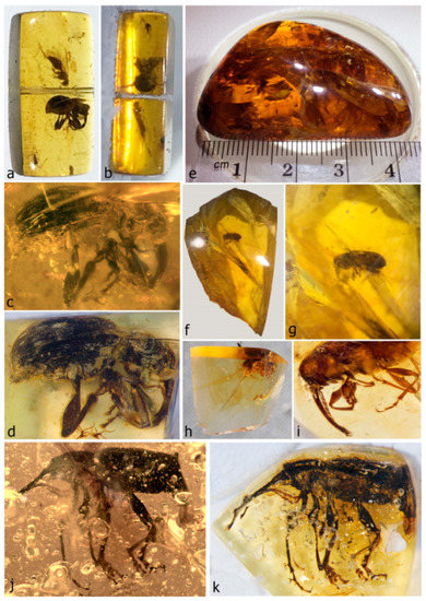 - Weitschat, W.; Wichard, W. Atlas of Plants and Animals in Baltic Amber; Verlag Dr. Friedrich Pfeil: München, Germany, 2002; 256p. [Google Scholar]
