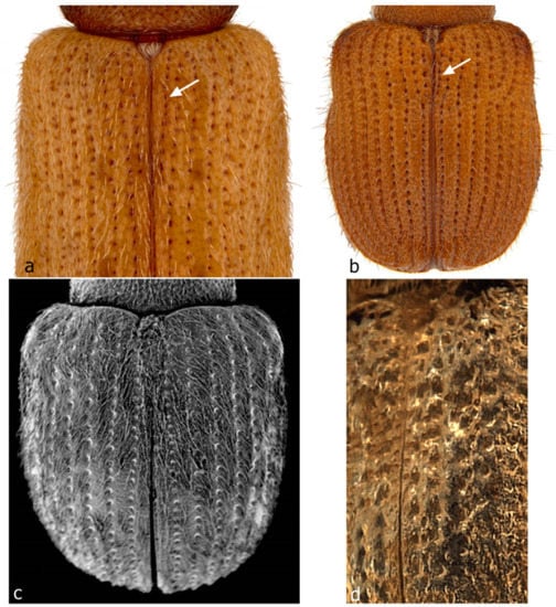 - Alonso-Zarazaga, M.A.; Lyal, C.H.C. A catalogue of family and genus group names in Scolytinae and Platypodinae with nomenclatural remarks (Coleoptera: Curculionidae). Zootaxa 2009, 2258, 1–134. [Google Scholar]