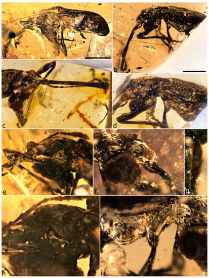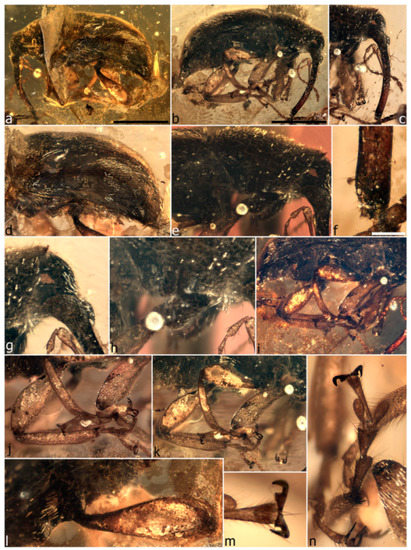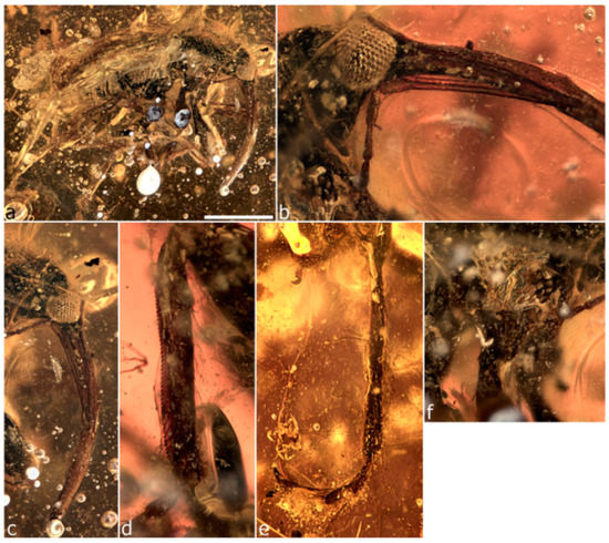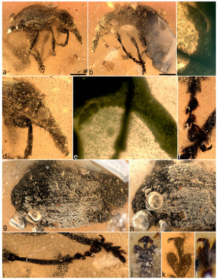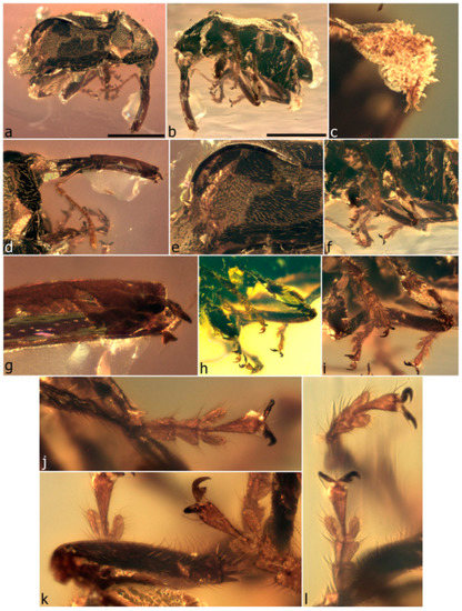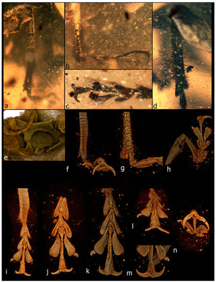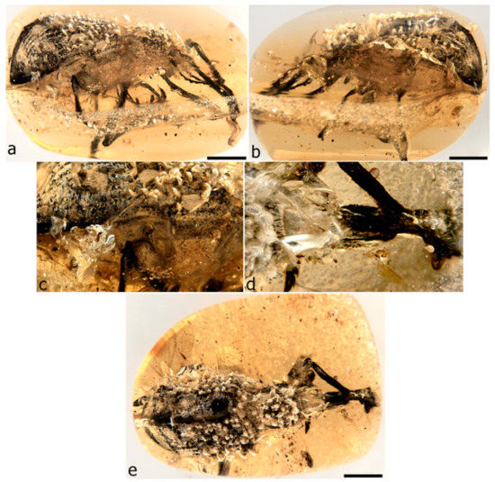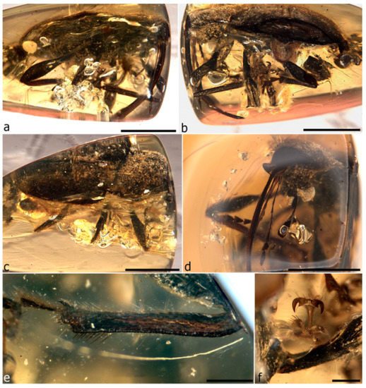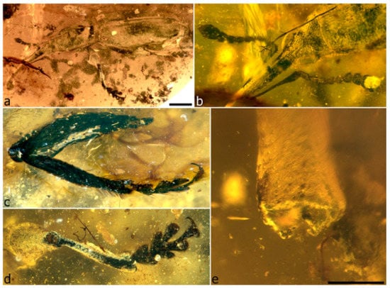 - Grimaldi, D.A.; Engel, M.S.; Nascimbene, P.C. Fossiliferous Cretaceous amber from Myanmar (Burma): Its rediscovery, biotic diversity, and paleontological significance. Am. Mus. Novit. 2002, 3361, 1–71. [Google Scholar] [CrossRef]