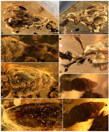 - Zhang, W. Frozen Dimensions. The Fossil Insects and Other Invertebrates in Amber; Chongqin University Press: Chongqin, China, 2017; 698p. [Google Scholar]