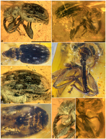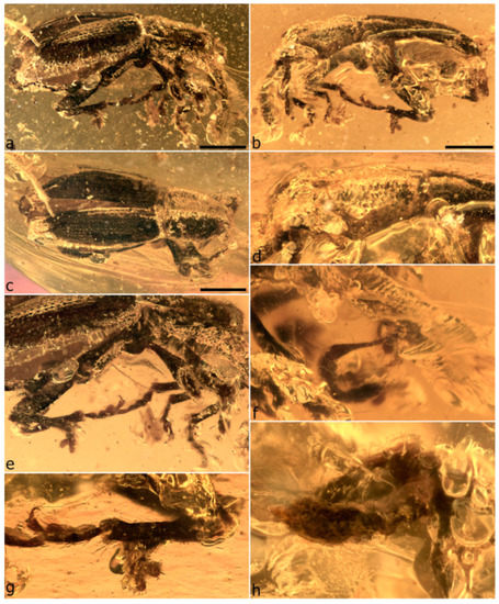 - Legalov, A.A.; Poinar, G., Jr. New tribes of the superfamily Curculionoidea (Coleoptera) in Burmese amber. Hist. Biol. 2015, 27, 558–564. [Google Scholar] [CrossRef]
