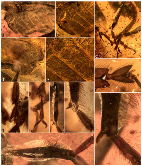 - Azar, D.; Perrichot, V.; Néraudeau, D.; Nel, A. New psychodids from the Cretaceous ambers of Lebanon and France, with a discussion of Eophlebotomus connectens Cockerell, 1920 (Diptera, Psychodidae). Ann. Entomol. Soc. Am. 2003, 96, 117–126. [Google Scholar] [CrossRef]