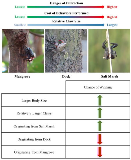The following are available online at http://www.mdpi.com/1424-2818/11/1/6/s1, Table S1: Full statistical result of the simplest model by AIC of all aggression assay tests, Table S2: Morphological measurements of crabs from each habitat.