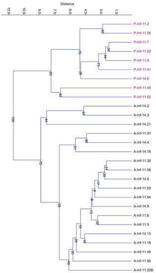 Accordingly, the UPGMA performed on the resistance patterns data matrix confirmed the clear separation between strains belonging to the two genera (Figure 8).