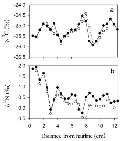 - Schoeninger, M.J.; Bada, J.L. Carbon and nitrogen stable isotope variation in primate hair reflects ecological and dietary variation. In Abstracts of Papers of the American Chemical Society; American Chemical Society: Washington, DC, USA, 2001; Volume 221, p. U534. [Google Scholar]