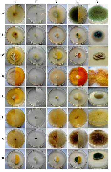 - Chen, A.J.; Frisvad, J.C.; Sun, B.D.; Varga, J.; Kocsube, S.; Dijksterhuis, J.; Kim, D.H.; Hong, S.B.; Houbraken, J.; Samson, R.A. Aspergillus section Nidulantes (formerly Emericella): Polyphasic taxonomy, chemistry and biology. Stud. Mycol. 2016, 84, 1–118. [Google Scholar] [CrossRef] [PubMed]