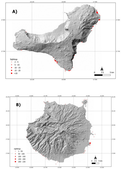 The following material is available online at https://www.mdpi.com/1424-2818/11/12/230/s1, Table S1: Questionnaire for interviews; Table S2: Data of sightings in El Hierro island; Table S3: Data of sightings in Gran Canaria island.