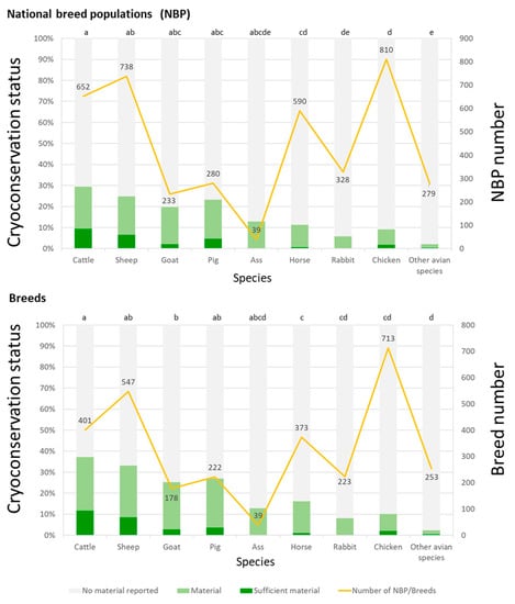 Tables S2 and S4). Only for cattle breeds (11.7%) did the proportion of NBP or breeds with sufficient material to allow reconstitution exceed 10%.