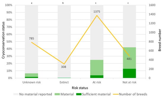 When comparing the cryoconservation status of breeds in relation to their risk status (