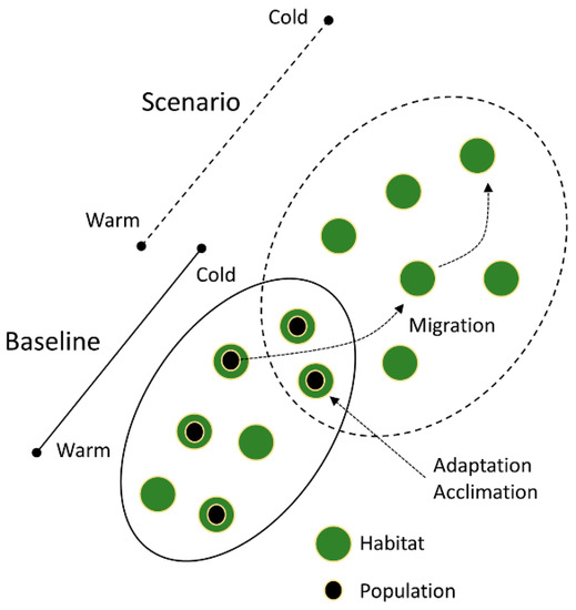 Conceptually, bioclimatic models estimating exposure to larger-scale climate change can be cross-referenced with a species ecological response relating to habitat specialisation and microclimatic niche availability, dispersal rate, genetic diversity or acclimation potential, in order to map an overall climate change risk score and to identify indicator species for conservation.