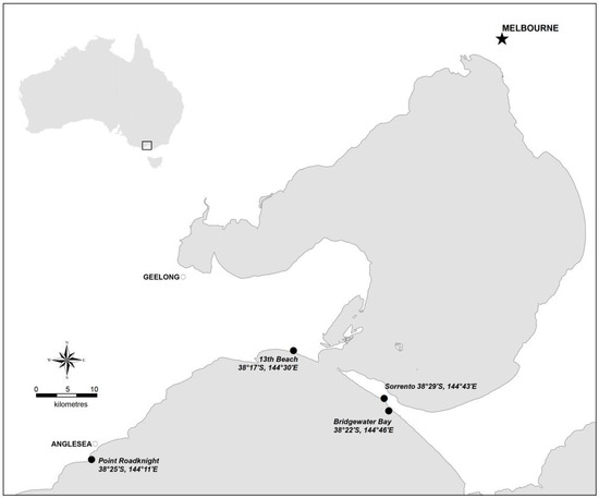 - Bird, E. The Coast of Victoria: The Shaping of Scenery; Melbourne University Press: Carlton, Australia, 1993. [Google Scholar]