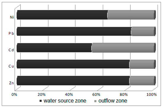 Ratio of water heavy metal concentrations in the water source zone to those in the outflow zone.