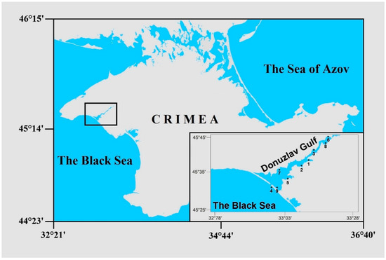 - Ryabushko, L.I.; Lishaev, D.N.; Shiroyan, A.G. The species, ecological and geographical diversity of microphytobenthos microalgae in the Crimean coast of the Black Sea. In Proceedings of the 2nd International UNIDOCAP the Blacк Sea Symposium on Biodiversity, Samsun, Turkey, 28–30 November 2018; Progr. & Abstract. Book: Samsun, Turkey, 2018; p. 33. (In Russian). [Google Scholar]