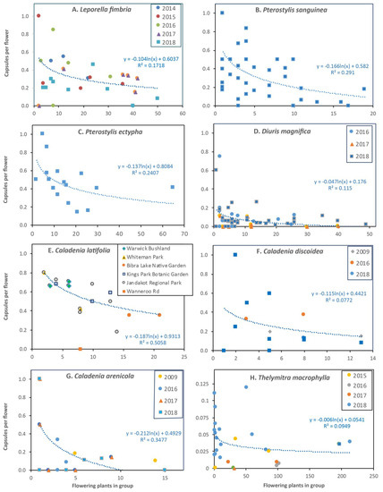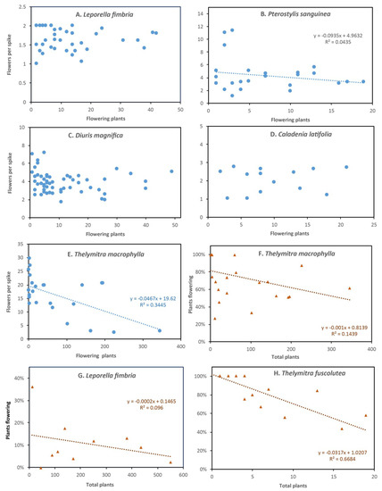- Jacquemyn, H.; Brys, R.; Honnay, O. Large population sizes mitigate negative effects of variable weather conditions on fruit set in two spring woodland orchids. Biol. Lett. 2009, 5, 495–498. [Google Scholar] [CrossRef] [PubMed][Green Version]
