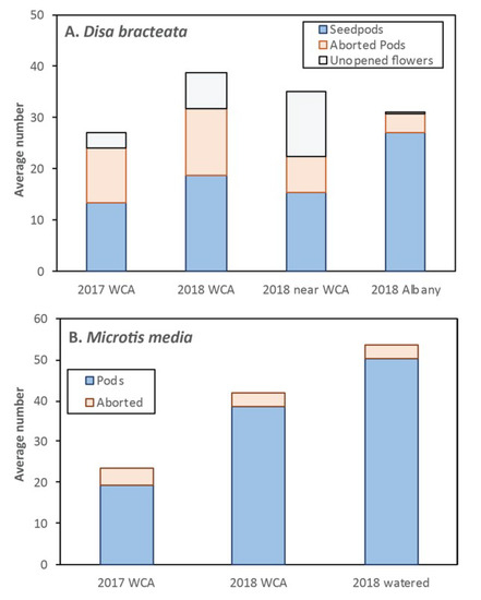 Brundrett, M.C. A Comprehensive Study of Orchid Seed Production Relative to Pollination Traits, Plant Density and Climate in an Urban Reserve in Western Australia. Diversity 2019, 11, 123. https://doi.org/10.3390/d11080123