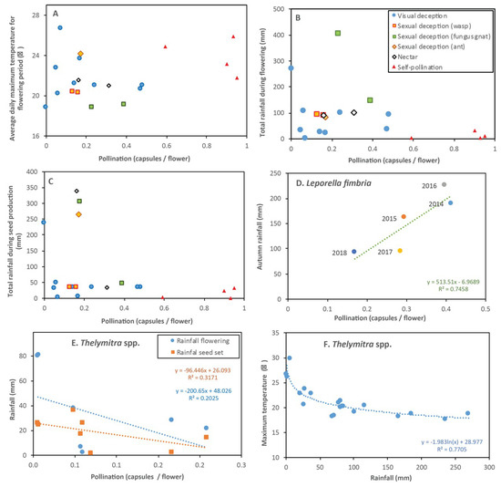 4.3. Pollination Outcomes Relative to Orchid Ecology and Evolution