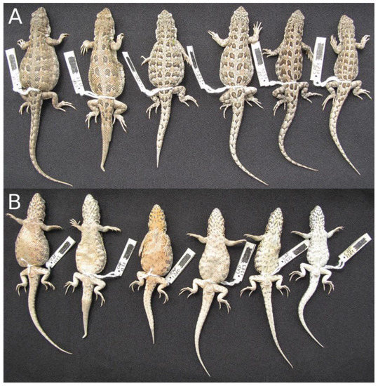 - Smith, H. Handbook of Lizards: Lizards of the United States and of Canada; Cornell University Press: New York, NY, USA, 2018; p. 557. [Google Scholar]