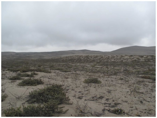 Distribution and natural history (Figure 4). Liolaemus nazca is only known in Nazca province, Ica department, at elevations of 450–700 m. It was found on the ground or in shallow holes on the ground, mainly in hills (“Lomas”) with low shrub vegetation and sandy soil, less frequently in areas with Tillandsia sp. In the summer, some individuals were active as early as 7:27 and as late as 16:22; on winter no individuals were observed. Body temperature of ten specimens ranged 22.7–34.0 °C (substrate temperature: 22.8–44.1 °C; air temperature: 21.4–31.0 °C). It was found together with Ctenoblepharys adspersa, Microlophus sp. and Phyllodactylus gerrophygus. This species is viviparous, one female had two embryos on each side at an advanced stage of development. On the Pacific coast, L. nazca is the northernmost species of Liolaemus.