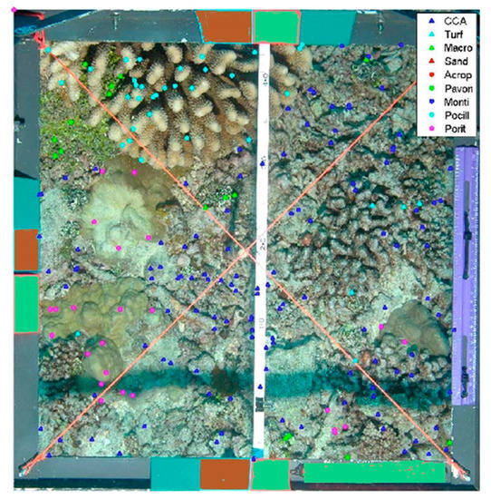A sample image from the Moorea Labeled Corals (MLC) dataset shows randomly labeled points. After (Beijbom et al. (2012)) [45].