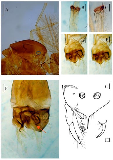 - Sæther, O.A. Female Genitalia in Chironomidae and Other Nematocera: Morphology, Phylogenies, Keys; Stevenson, J.C., Ed.; Bulletin of the Fisheries Research Board of Canada: Ottawa, ON, Canada, 1997; p. 139. [Google Scholar]