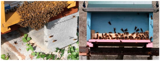 The components of the hive, which attract the most attention of V. v. nigrithorax, have been the subject of study for some years. Hornets are strongly attracted by the odour of some hive products, especially pollen and honey []. A laboratory study showed that V. v. nigrithorax workers can use both visual and olfactory cues to locate honey bees [].