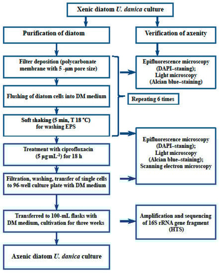 Main steps taken during the purification of the culture of planktonic diatom U. danica from Lake Baikal.