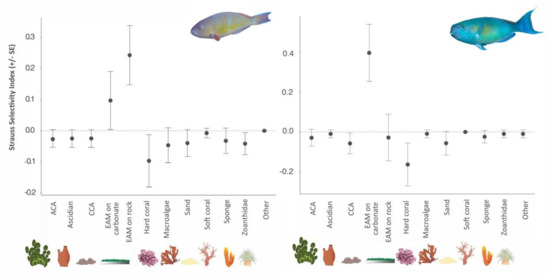- Nicholson, G.M.; Clements, K.D. Resolving resource partitioning in parrotfishes (Scarini) using microhistology of feeding substrata. Coral Reefs 2020, 1–15. [Google Scholar] [CrossRef]