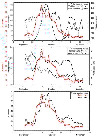 | ≤30 | Passages/hr/ha of rotor | 18.8 | 6–32 | 52.1 | 6–98 | −2.029 | 0.047 |
