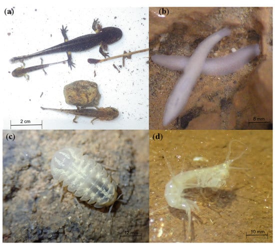 - Culver, D.C.; Pipan, T. Shallow Subterranean Habitats Ecology, Evolution, and Conservation; Oxford University Press: New York, NY, USA, 2014. [Google Scholar]