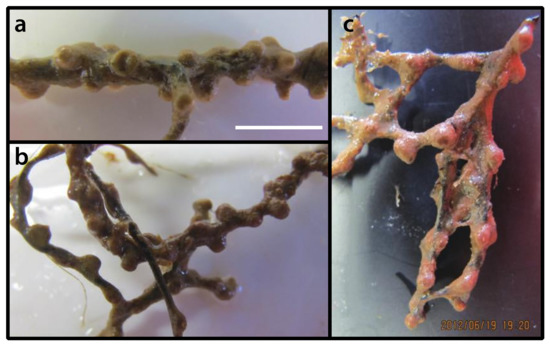 Figure 3. Preserved specimens of Anthipathozoanthus aff. macaronesicus from Naturalis collected from Buoy 9, Caracas Baai [point 45], Curaçao, all depth >10 m; (a) specimen RMNH.COEL.40331, (b) RMNH.COEL.40332, and c) RMNH.COEL.40763. Scale bar in (a) = approximately 1 cm.