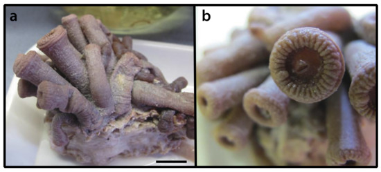 - Ellis, J. An account of the Actinia Sociata, or clustered animal-flower, lately found on the sea-coasts of the new-ceded islands: In a letter from John Ellis, Esquire, F.R.S. to the Right Honourable the Earl of Hillsborough, F.R.S. Phil. Trans. 1768, 57, 428–437. [Google Scholar]