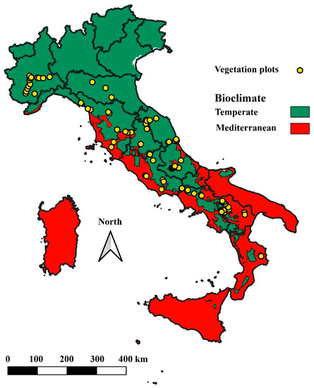 - Pesaresi, S.; Biondi, E.; Casavecchia, S. Bioclimates of Italy. J. Maps 2017, 13, 955–960. [Google Scholar] [CrossRef]