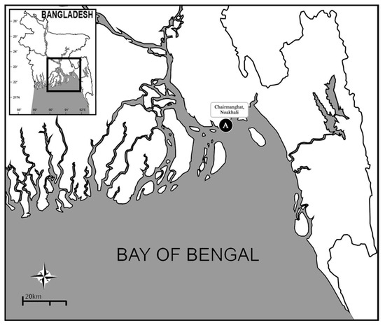 - Belaluzzaman, A.M. Ecology of the intertidal macrobenthic fauna in Cox’s Bazar coastal area, Bangladesh. Master’s Thesis, Institute of Marine Sciences and Fisheries, University of Chittagong, Chittagong, Bangladesh, 1995. [Google Scholar]