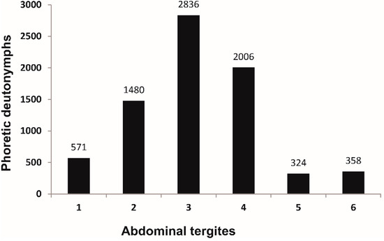 3.2. Distribution of Trichouropoda sociata on Plagionotus detritus
