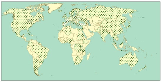 A total of 122 demodecid mite species with verified systematic status are presently known, of which one represents Apodemodex, 106 Demodex, one Glossicodex, seven Ophthalmodex, one Pterodex, one Rhinodex, one Soricidex and four Stomatodex (Table 1). Representatives of the Demodecidae have been recorded on all continents outside of the polar regions (Figure 2), and their presence is typically dictated by the presence of a typical host; however, no studies of this group have been conducted in numerous areas of its range, even for common mammal species. Many species of hosts have wide distribution ranges and are also considered cosmopolitan.