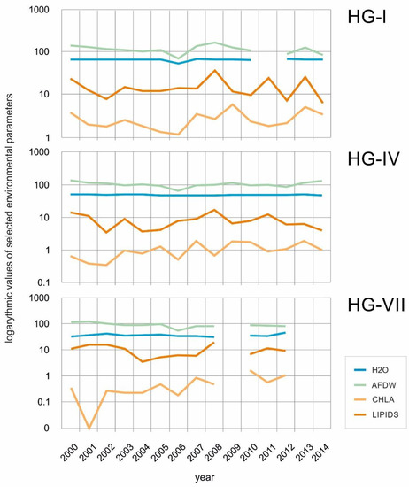 - Soltwedel, T.; Bauerfeind, E.; Bergmann, M.; Bracher, A.; Budaeva, N.; Busch, K.; Cherkasheva, A.; Fahl, K.; Grzelak, K.; Hasemann, C.; et al. Natural variability or anthropogenically-induced variation? Insights from 15 years of multidisciplinary observations at the arctic marine LTER site HAUSGARTEN. Ecol. Ind. 2016, 65, 89–102. [Google Scholar] [CrossRef]
