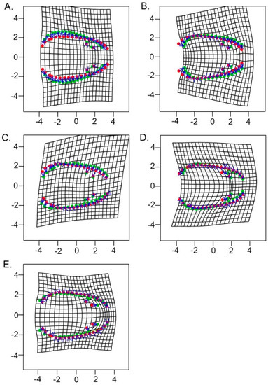 - Zelditch, M.L.; Swiderski, D.L.; Sheets, H.D. Geometric Morphometrics for Biologists: A Primer, 2nd ed.; Academic Press: San Diego, CA, USA, 2012; pp. 105–128. [Google Scholar]