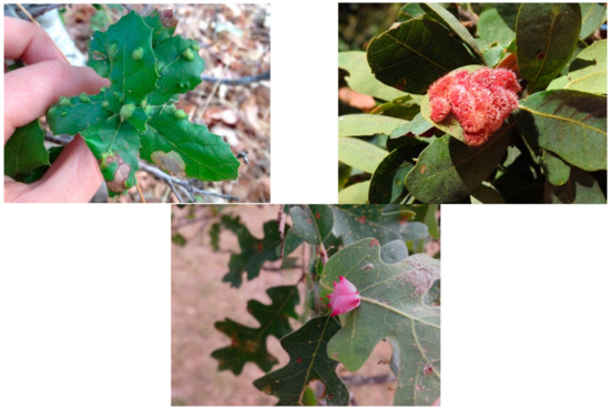 - Pascual-Alvarado, E.; Nieves-Aldrey, J.L.; Castillejos-Lemus, D.E.; Cuevas-Reyes, P.; Oyama, K. Diversity of galls induced by wasps (Hymenoptera: Cynipidae, Cynipini) associated with oaks (Fagaceae: Quercus) in Mexico. Bot. Sci. 2017, 95, 461–472. [Google Scholar] [CrossRef]