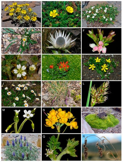 - Körner, C.H. Alpine plant diversity: A global survey and functional interpretations. In Arctic and Alpine Biodiversity: Patterns, Causes and Ecosystem Consequences; Chapin, F.S., Körner, C., Eds.; Springer: Berlin/Heidelberg, Germany, 1995. [Google Scholar]