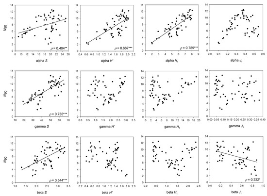 The positive correlation of N90 with beta S denotes that beta S would increase due to an increase in the total number of species (gamma S), not compensated for by an increase in mean S (alpha S). However, at least some of the species increasing gamma S, although not frequent enough to change the mean S, would be evenly distributed enough to contribute to the value of the N90, allowing this index to account for some portion of the beta diversity.
