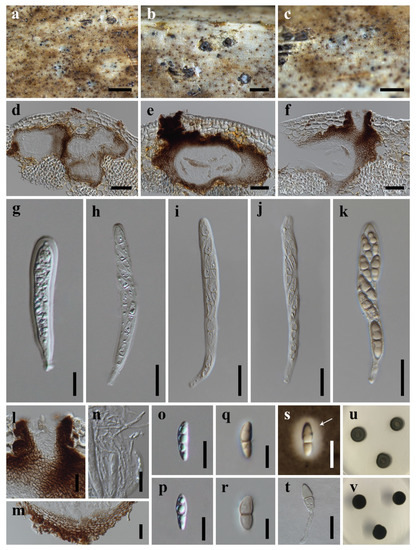 - Wanasinghe, D.N.; Wijayawardene, N.N.; Xu, J.C.; Cheewangkoon, R.; Mortimer, P.E. Taxonomic novelties in Magnolia-associated pleosporalean fungi in the Kunming Botanical Gardens (Yunnan, China). PLoS ONE 2020, 15, e0235855. [Google Scholar] [CrossRef]