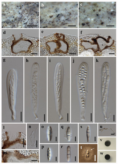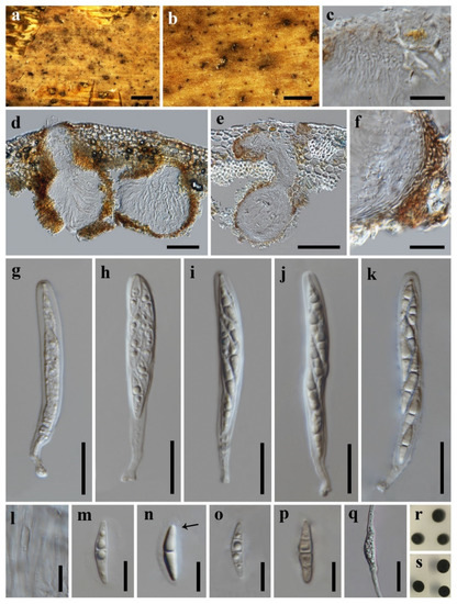 - Jayasiri, S.C.; Hyde, K.D.; Jeewon, R.; Bhat, J.D.; Camporesi, E.; Kang, J.C. Neooccultibambusa jonesii, a novel taxon within Occultibambusaceae. Mycosphere 2016, 7, 1458–1472. [Google Scholar] [CrossRef]