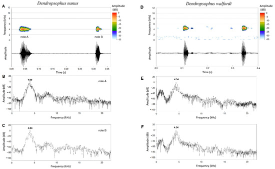 - Guarnizo, C.E.; Escallón, C.; Cannatella, D.; Amézquita, A. Congruence between acoustic traits and genealogical history reveals a new species of Dendropsophus (Anura: Hylidae) in the high Andes of Colombia. Herpetologica 2012, 68, 523–540. [Google Scholar] [CrossRef]
