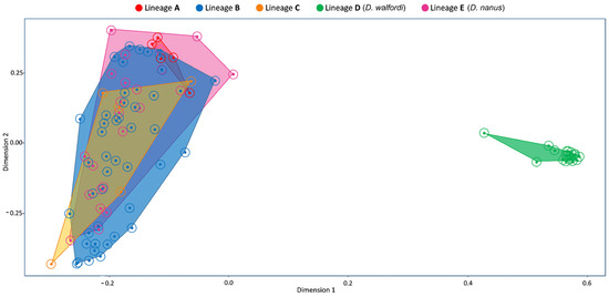 Seger KR, da Veiga Teixeira BF, Annibale FS, Rossa-Feres DdC, Lima AP, Andrade GV, Giaretta AA, Lourenço LB. Five Independent Lineages Revealed by Integrative Taxonomy in the Dendropsophus nanus–Dendropsophus walfordi Species Complex. Diversity. 2021; 13(11):522. https://doi.org/10.3390/d13110522