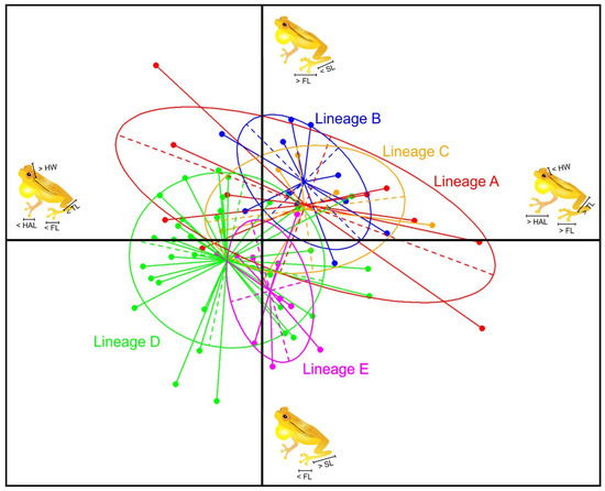 - Pröhl, H.; Koshy, R.A.; Mueller, U.; Rand, A.S.; Ryan, M.J. Geographic variation of genetic and behavioral traits in northern and southern túngara frogs. Evolution 2006, 60, 1669–1679. [Google Scholar] [CrossRef]