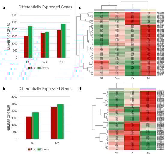 | Down-regulated | glutathione-dependent formaldehyde dehydrogenase, signal peptides, auxin transport protein, carbonic anhydrase, bZIP transcription factor, pre-mRNA processing factor 8 | heme exporter protein D, berberine bridge-like enzyme, renin receptor-like protein, MFS-1, FAD linked oxidases, a post-Golgi secretory-vesicle coat complex, AAA proteins,  proteins binding to iron-sulphur clusters, major facilitator protein family, amino acid permease, polyketide synthase, alcohol dehydrogenase  |