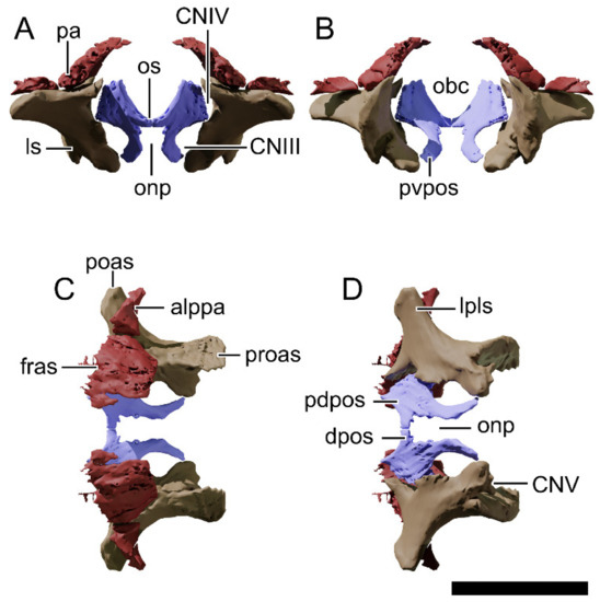 - Müller, R.T.; Ferreira, J.D.; Pretto, F.A.; Bronzati, M.; Kerber, L. The endocranial anatomy of Buriolestes Schultzi (Dinosauria: Saurischia) and the early evolution of brain tissues in sauropodomorph dinosaurs. J. Anat. 2021, 238, 809–827. [Google Scholar] [CrossRef]