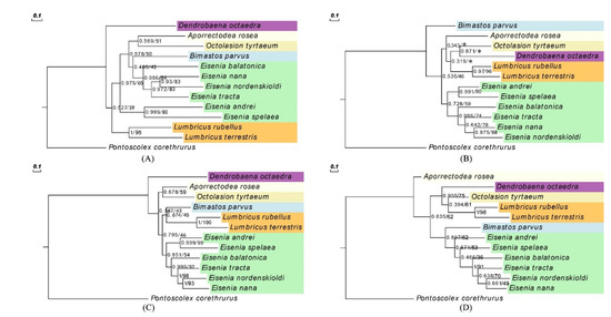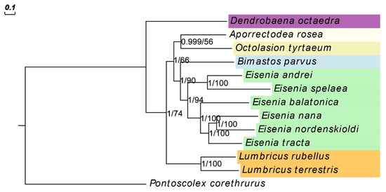 - Domínguez, J.; Aira, M.; Breinholt, J.W.; Stojanovic, M.; James, S.W.; Pérez-Losada, M. Underground evolution: New roots for the old tree of lumbricid earthworms. Mol. Phylogenetics Evol. 2015, 83, 7–19. [Google Scholar] [CrossRef]