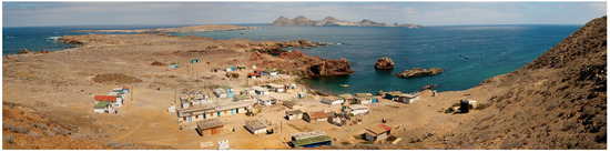 SBO harbors a small PNA fishing village (ca. 20 constructions) located in its southern east portion, which between 10–60 people inhabit throughout the year (Figure 2). The whole island, including the land where the fishing village is located, is owned by Mexico’s federal government, although the existing infrastructure and its maintenance and improvement has received investment from PNA. Peak season of human presence and activity on SBO is during the abalone harvest (January to July) and lobster season (mid-September to mid-February).